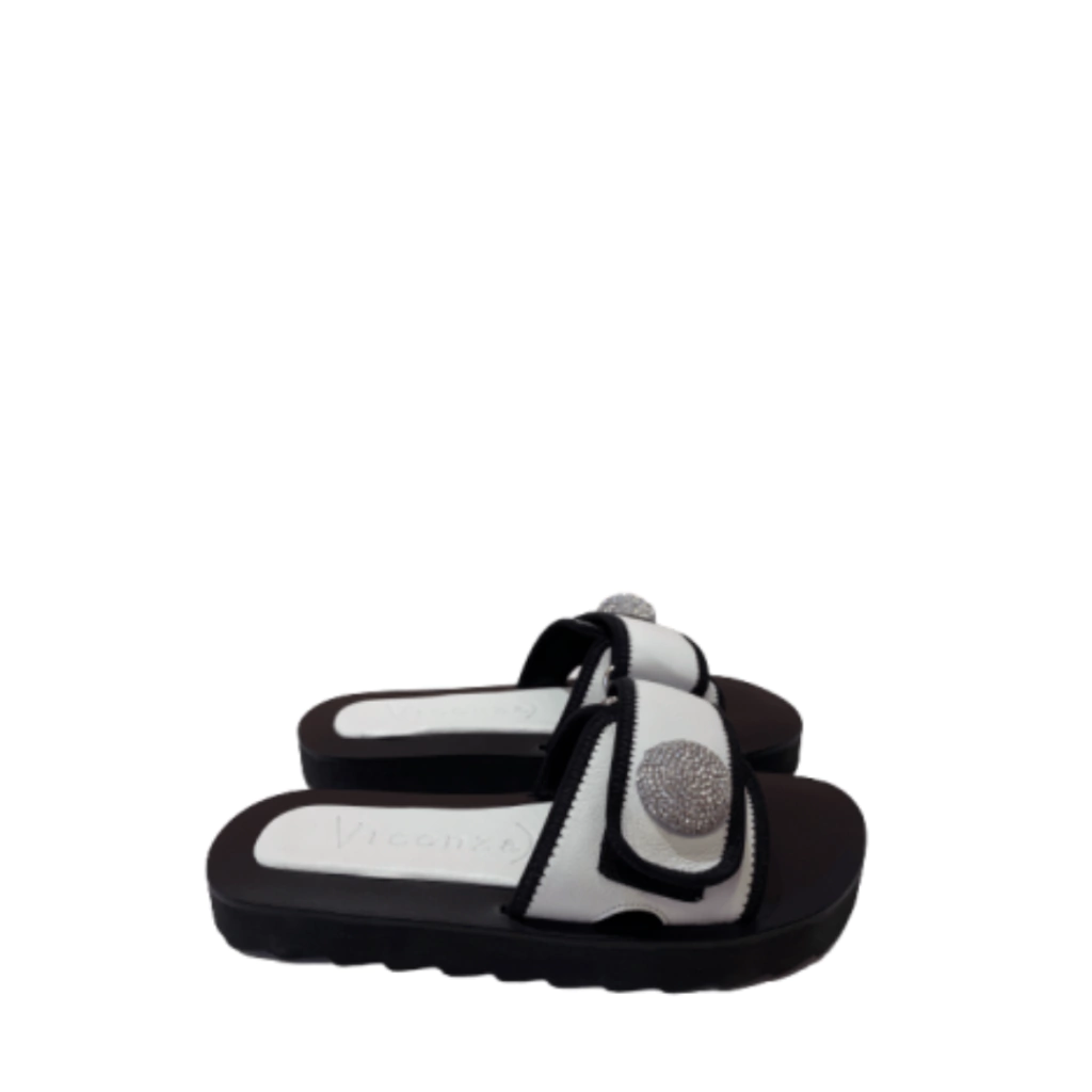 Uma flat impecável da Vicenza. Com sola flatform tratorada de 2 centímetros, esse modelo foge das rasteirinhas óbvios com muito estilo e conforto. A tira frontal, possui velcro regulável. Fica nessa área também o detalhe de brilho que dá um toque fashion ao calçado. A pedraria coberta de strass transforma o item em uma verdadeira obra de arte. Use com vestidos, calças, shorts e saias.